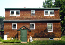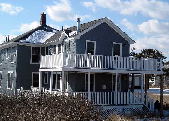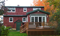 Paul really has a good eye. He integrated our addition, actually two separate sections, beautifully into the existing structure in a way we would never have been able to envision by ourselves. We get compliments on the roof line and consistency of the elaborate trim lines from almost everyone who comes into our yard. His idea for our new high-ceilinged room was inspired by his realization that only a cathedral ceiling would keep the house looking consistent from the outside. The result is a striking room which highlights the river view. We think he’s a very good designer.